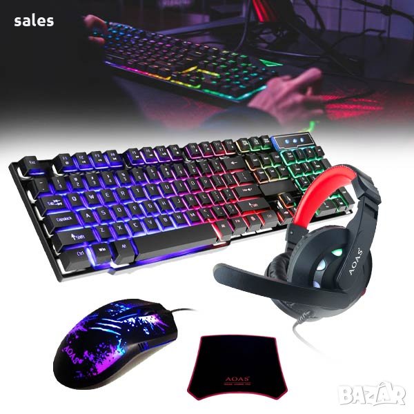 ✔️Стартов геймърски комплект се състои от клавиатура с високи бутони и RGB подсветка, слушалки с микрофон с високо качество на звука, RGB геймърска мишка и голяма подложка за мишката.