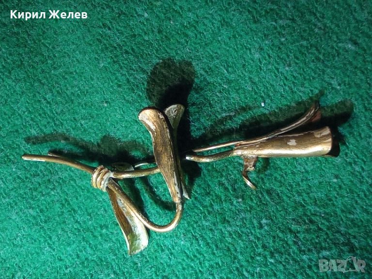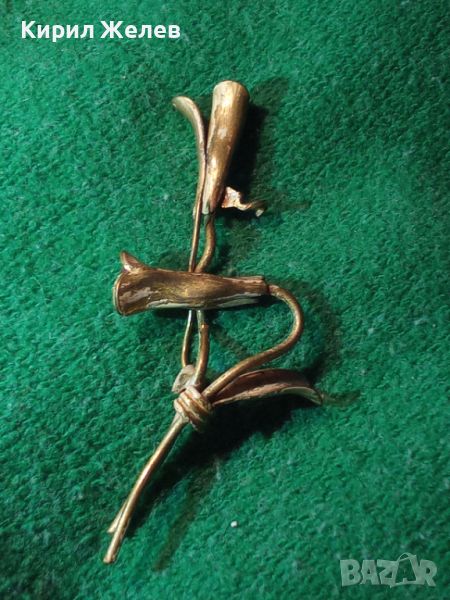 ВИНТИДЖ РЕТРО БРОНЗОВА ФЛОРАЛНА СТАРИННА БРОШКА - ЦВЕТЕ ПОЗЛАТЕНА 24447