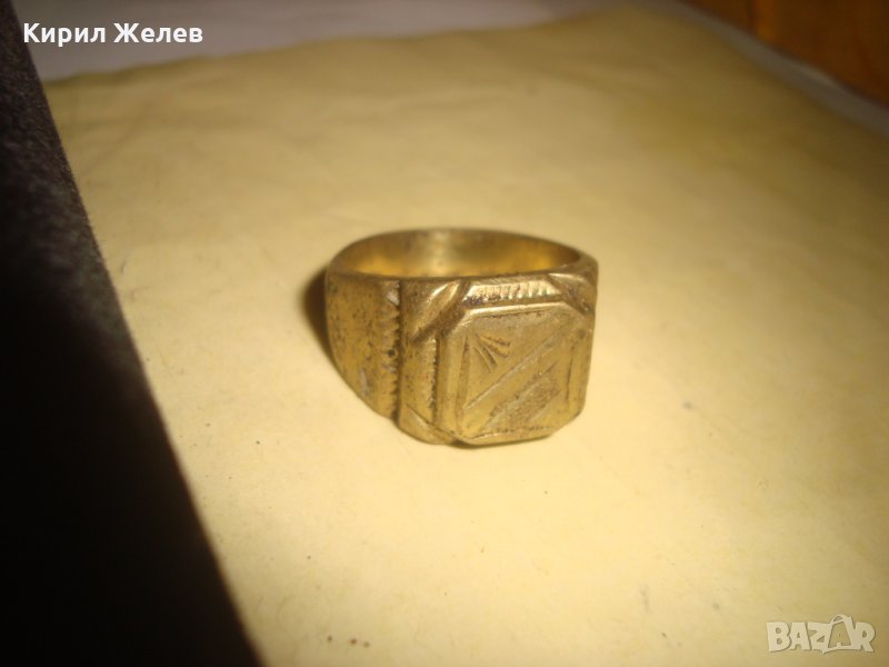 СТАР ПОЗЛАТЕН БРОНЗОВ ПРЪСТЕН ОРНАМЕНТИРАН РЪЧНО МАЙСТОРСКА АРТ ДЕКО ИЗРАБОТКА МАСИВЕН 18161