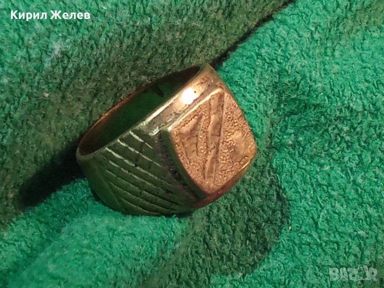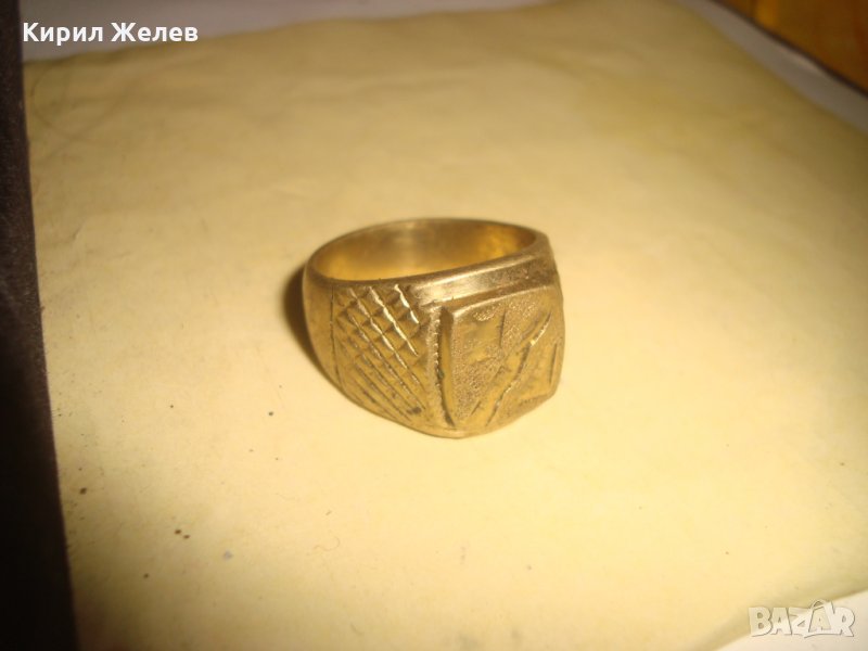 СТАР ПОЗЛАТЕН БРОНЗОВ ПРЪСТЕН ОРНАМЕНТИРАН РЪЧНО МАЙСТОРСКА АРТ ДЕКО ИЗРАБОТКА МАСИВЕН 6814