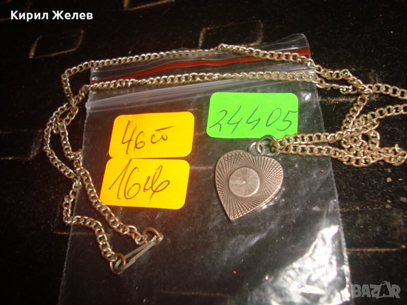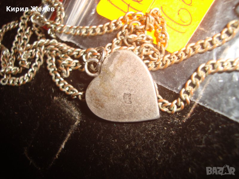 СРЕБЪРЕН / ПОСРЕБРЕН СЪРЦЕВИДЕН МЕДАЛЬОН МАРКИРАН и ПОСРЕБРЕНА МЕДНА ВЕРИЖКА ВИНТИДЖ АРТ КОЛИЕ 24405 → Обява 33867133