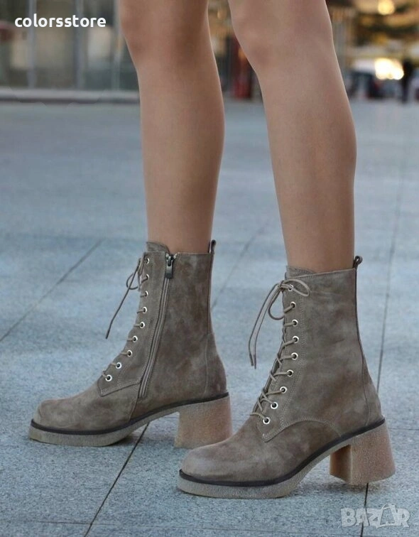 Боти на ток - визон ЕСТЕСТВЕН велур - 38505