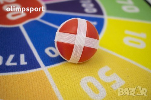 Велкро дартс с мека, безопасна мишена и диаметър 36 см. Комплектът съдържа две топчета и две стрелич