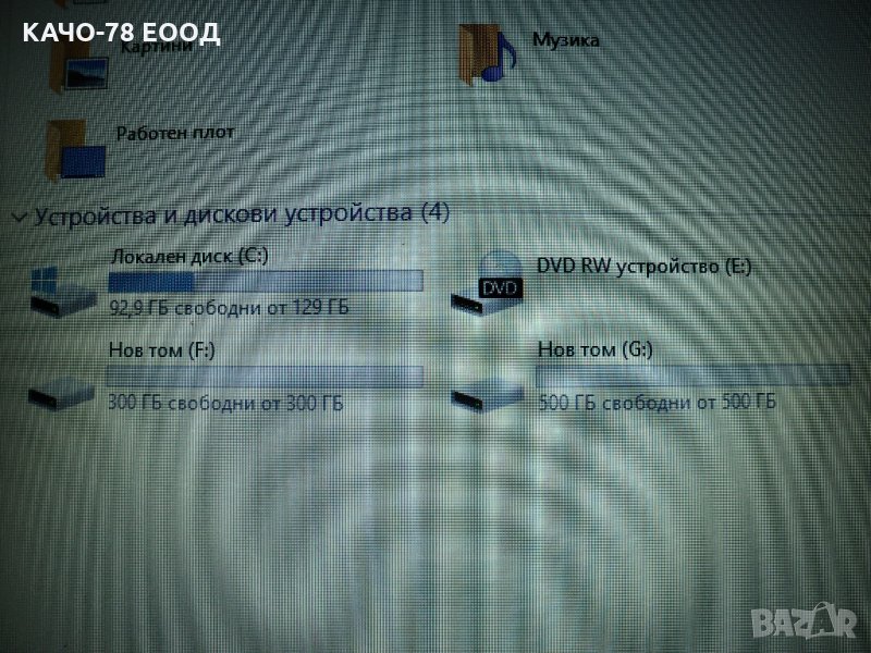 Харддиск – WD – 1 TB – разделен на три дяла, като на първия е качена операционната система, а другите са за съхранение на информация;