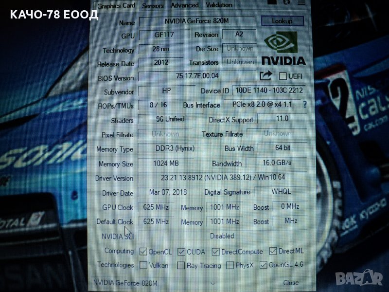 – NVIDIA Ge Force 820 M – 1024 mb;