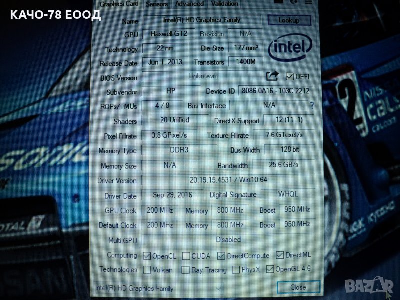 Лаптопа е минал профилактика, почистен е и е със сменена термопаста. Същият е преинсталиран с WIN 10 и са му поставени необходимите програми за нормална работа.