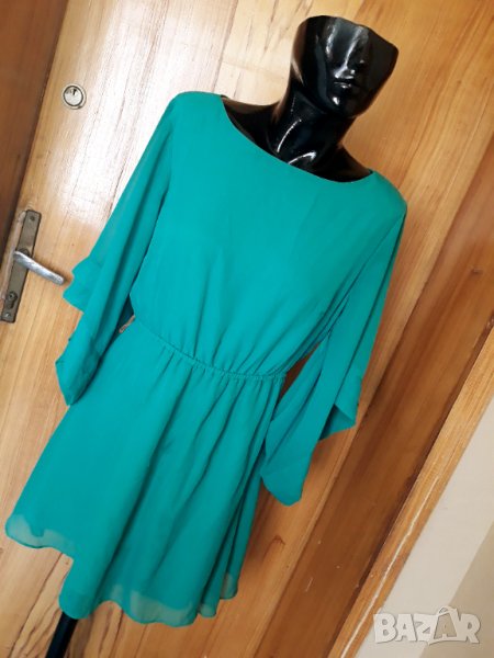 Тюркоазено-зелена феерична ефектна къса рокля Л → Обява 33870162