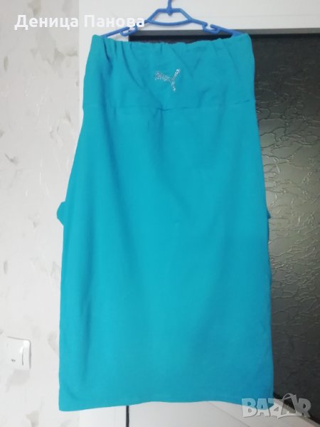 Спортна рокля в приятен тюркоазен цвят. Роклята е в отлично състояние. Имитация на голям джоб отпред. Размер Л по етикет, но по скоро е М.