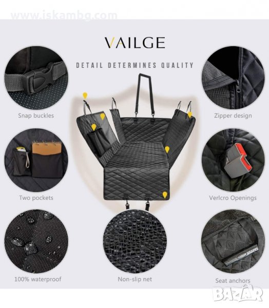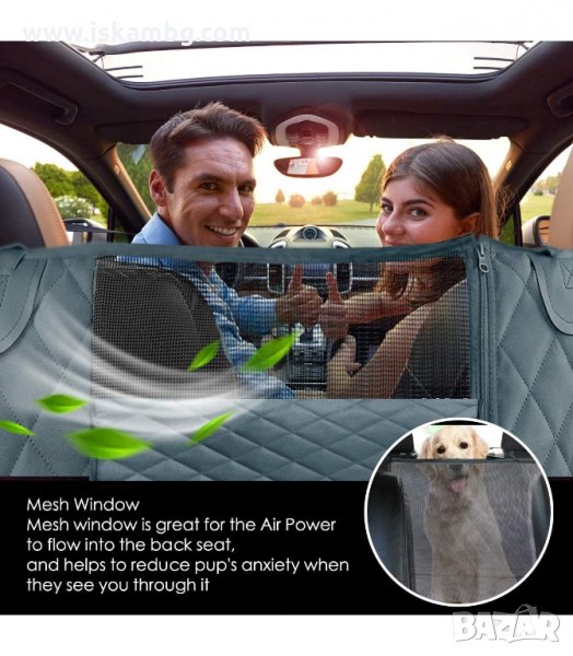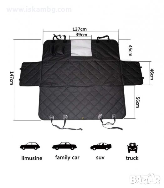 Покривало за задните седалки на автомобила. Изработено от здрав материал с регулируиеми ленти за закачане към гърба на предните седалки и подглавниците на задните.