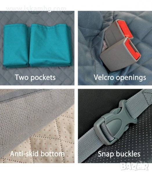 Защитно покривало за задните седалки на кола с джобове за шише за кучета