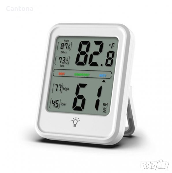 Термохигрометърът се отличава с ултра-тънка рамка, което прави LCD дисплея по-голям, а числовите показанията за температура и влажност са лесни за четене от почти всякакво разстояние. В съчетание с жълтата светлина на дисплея ще можете да четете без напрежение на очите дори в най-тъмните условия.
