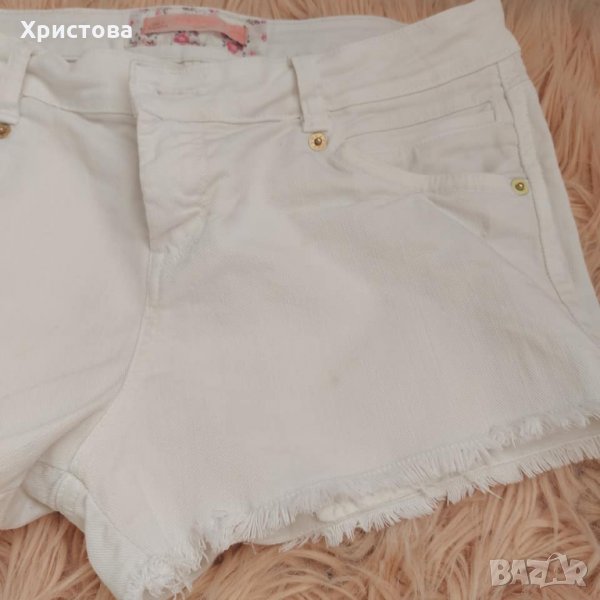 Дънкови къси панталонки в бяло на БЕРШКА. Размер С/М. Мек, еластичен деним. Символични цени на всички дрешки в профила ми. Опция тест и преглед. Доставка с отстъпка до офис ЕКОНТ 0899243418