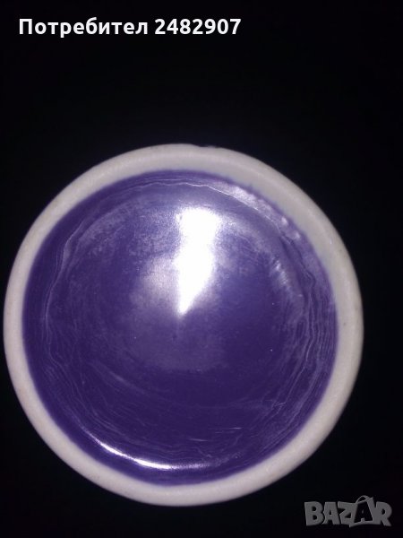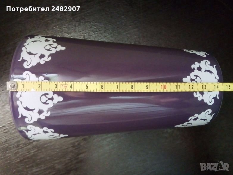 Много стара керамична ваза в лилаво с нежни бели орнаменти. Височина - 14,5 см, диаметър в долната част - 6 см, диаметър на отвора в горната част - 8,5 см. Много запазена.