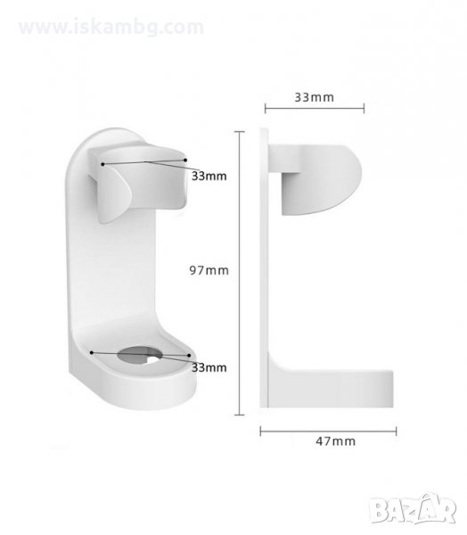 Поставката за четки за зъби пасва на 90% с всеки модел електрически четки за зъби. Състои се от 3 части, корпусът е снабден с двойно лепило, основата е с дренажен отвор и горна пластмасова част за опора и фиксиране.