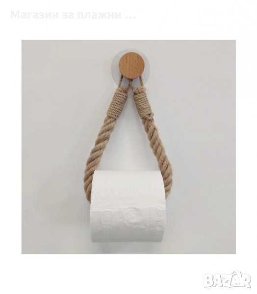 изработен от екологично чисти материали. Направен е от естествено въже от юта и метални скоби със сребърен цвят. Общата дължина на въжето от юта с вакуумно закрепване за стената. Може да се монтира директно към гладки повърхности чрез вакуум вендуза. Освен за поставяне на ролка тоалетна хартия, може да служи и като аксесоар за кърпа за баня.