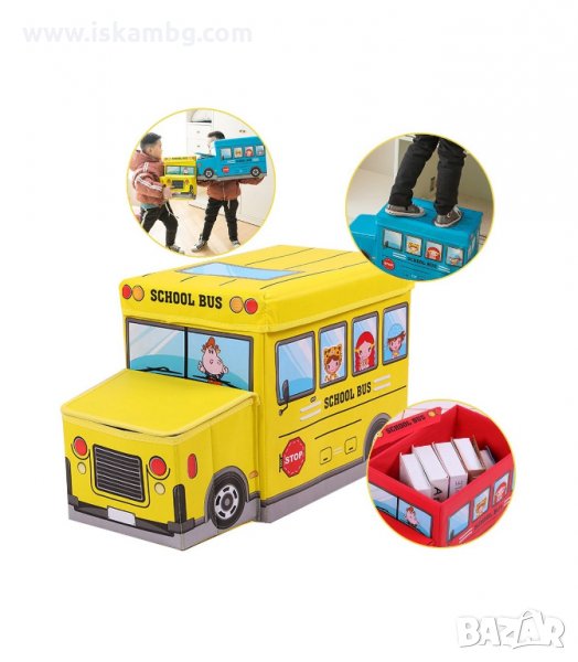 Представяме Ви сгъваема кутия за играчки, с две отделения, която ще побере доста от тях, и по - големи, и по - малки. Тази здрава кутия за съхранение се предлага в четири модела: Пожарен автомобил, Полицейски автомобил, Камион за сладолед или Училищен автобус/избери от падащото меню/.