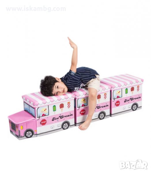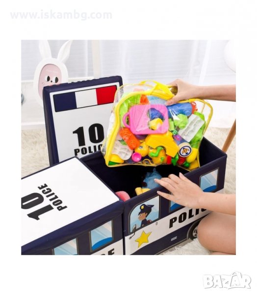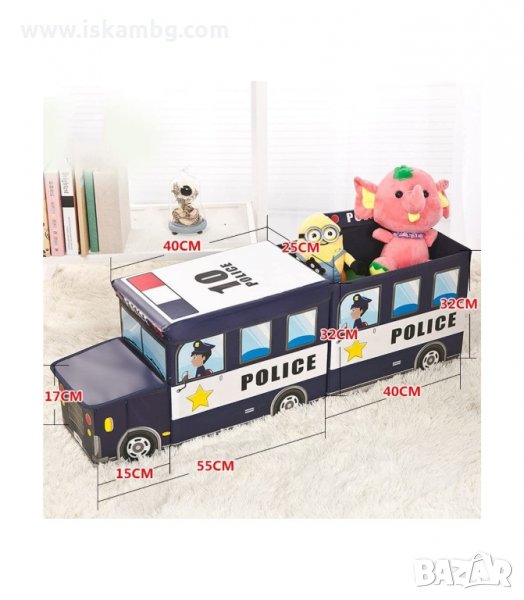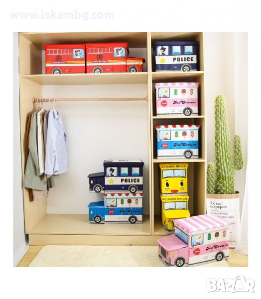 Кош за играчки - сгъваема кутия табуретка с форма на полицейска кола, пожарна, автобус и камион за сладолед