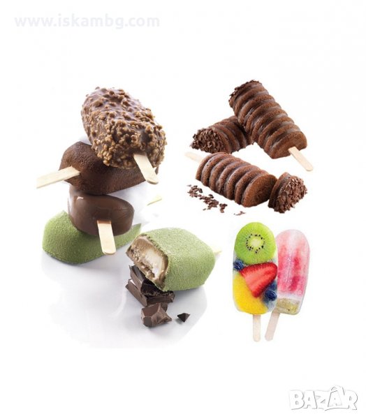 Разнообразието е огромно и всеки път да си направиш различен вид. Формата е направена от специален силикон, който е подходящ за хранителни продукти и е безвреден. Предназначена е за приготвяне на сладолед с дървени клечки.
