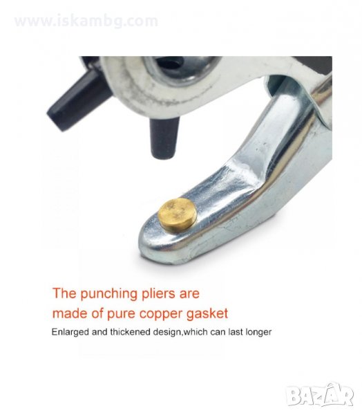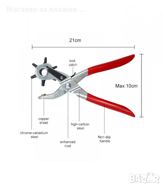 Клещи замба инструмент за пробиване на дупки на каишки за часовници, колани, кожа, пластмаса, плат, картон и др. или пробиване на отвори за поставяне на капси, рапиди, копчета за дънки или други дейности - 2мм, 2.5мм, 3мм, 3.5мм, 4мм, 4.5мм