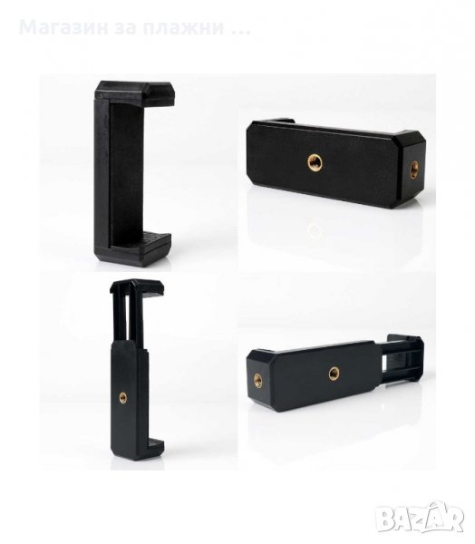 Стандартна резба 1/4 в долната страна на държача и на гърба му. Държач за адаптер, който ви позволява да прикрепите смартфона си, както хоризонтално, така и вертикално, към всеки фото статив.