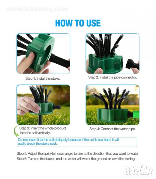 Лесен начин на употреба – просто свържете маркуча към пръскачката, за да го използвате. Автоматично напояване на градината и тревата, дори без ваше присъствие.