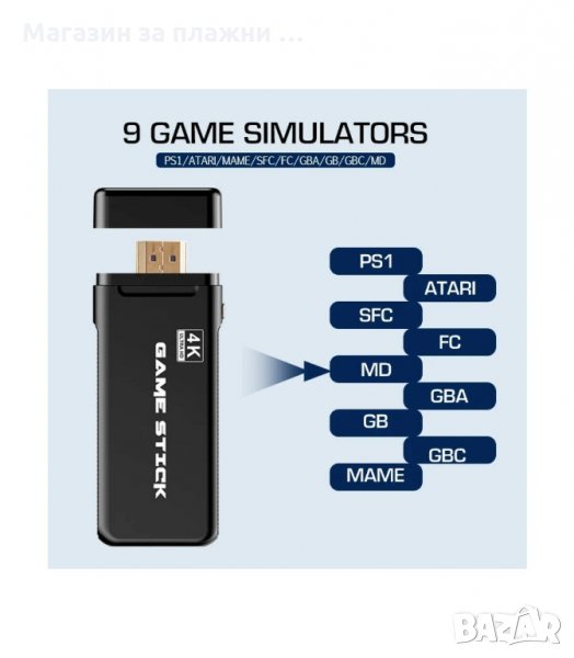 Комплектът включва два удобни джойстика, с дизайн на Playstation, които се свързват с HDMI към телевизор - безжично. Поддържа 9 различни игрови симулатора.