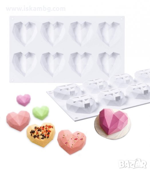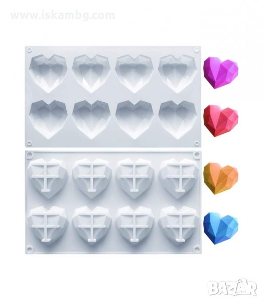 Силиконова форма за 8 бр. диамантени сърца - 1 бр.