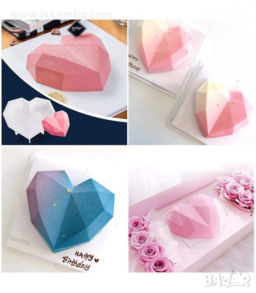 Ефектна силиконова форма за 3D Диамантено сърце за торта