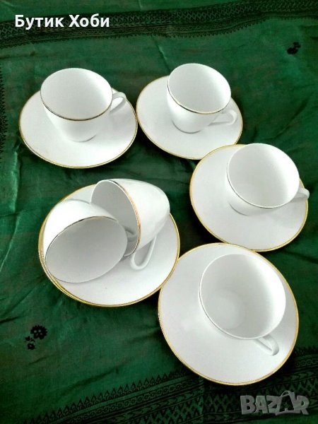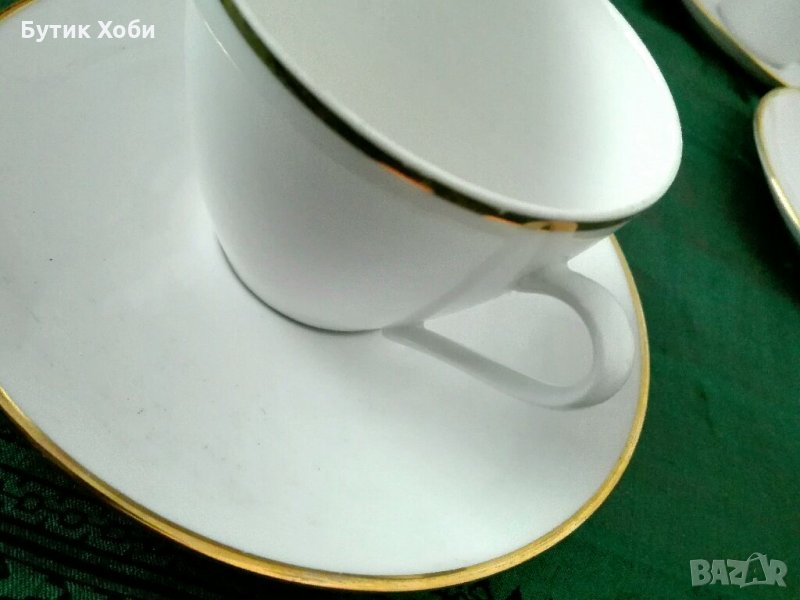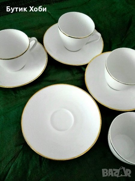 Класически баварски сервиз от порцелан в бяло със златен кант. Маркировки, в идеално състояние е.