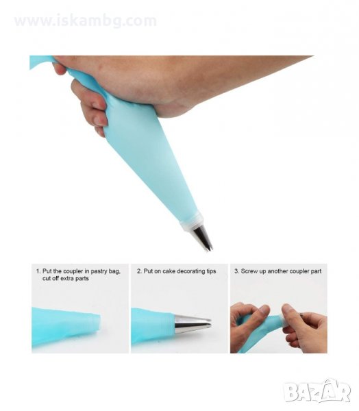 Поставете желаният накрайник, в долната част на силиконовия пош с конусовидна форма, след което изсипете готовата глазура до 1/3 от вместимостта му. Притискайки силиконовия резервоар започнете да оформяте фигури или надписи в желаната форма и размери. След употреба веднага почистете шприца и го оставете да изсъхне.