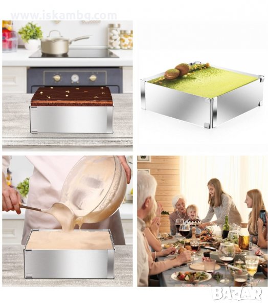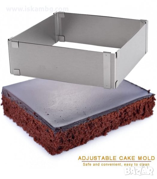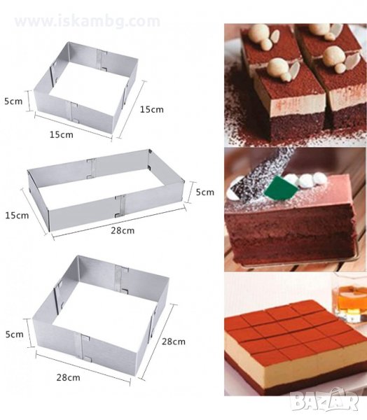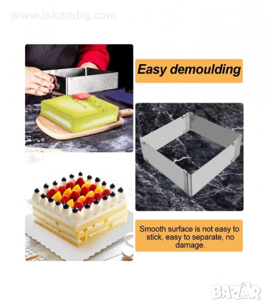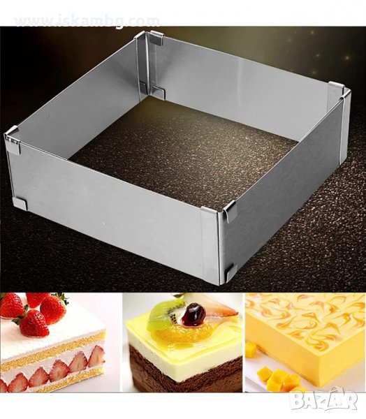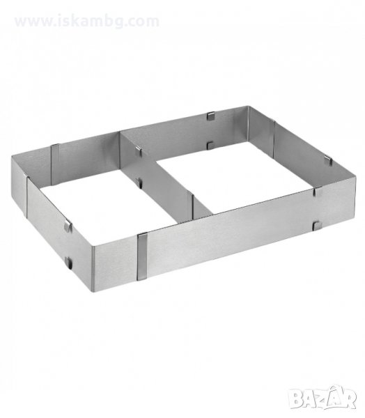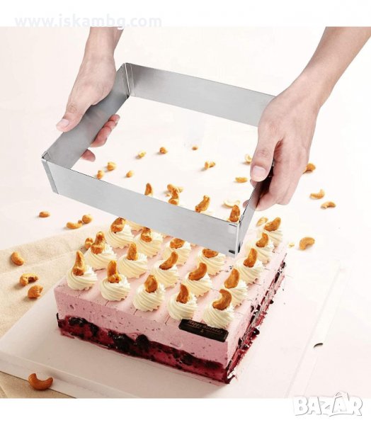 Правоъгълен ринг за торти и кексове, направен от изключително качествена неръждаема стомана.