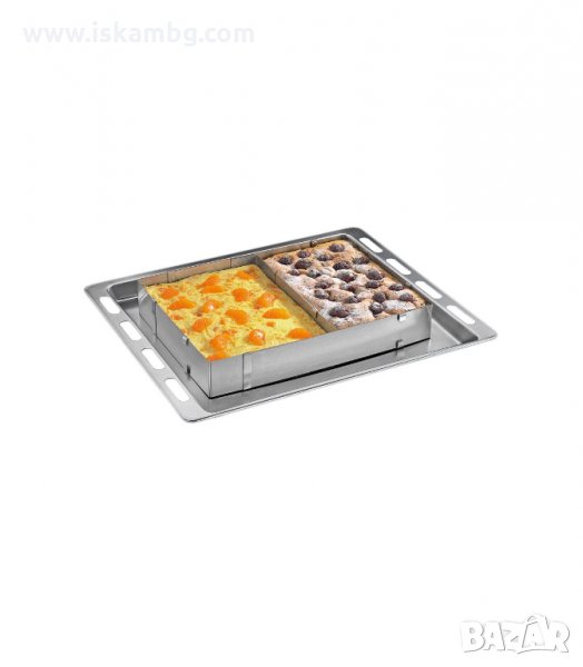 Когато се използва върху тавата за печене, моля, поставете под нея тава за многократна употреба или хартия за печене. Сладкишът може лесно да бъде изваден от рамката. Преди употреба нанесете противозалепващ спрей за печене или намажете леко рамката с мазнина.