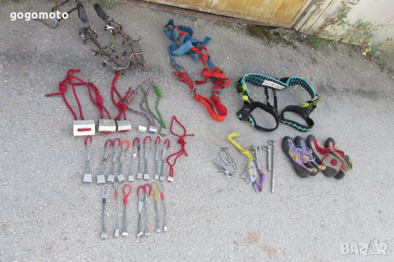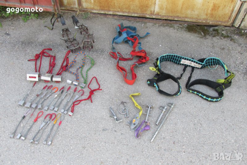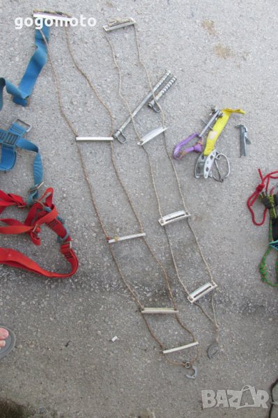 Има 2 стълби с 4 алуминиеви стъпала и кука на SALEWA = ПРОДАДЕНИ. Цената е без стълбите и седалката Petzl!