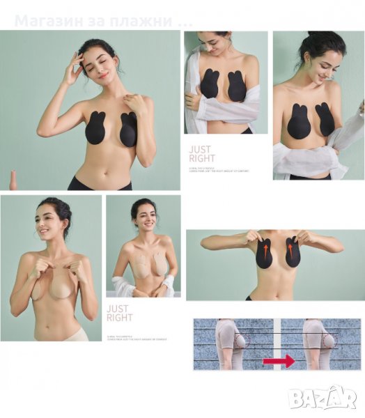 Повдигащият ефект на всяка чашка може да се регулира в зависимост от индивидуалните предпочитания. Не предизвиква дискомфорт, както носенето на сутиен с презрамки. Преди поставяне, почистете добре гърдите, за да може да прилепне плътно всяка чашка. След употреба, почистете сутиена, за да е готов за следващо ползване.
