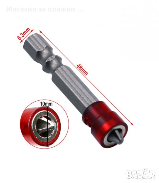 Много удобен магнитен бит камък с ограничител на дълбочината на завиване на винтове в меки плоскости като гипсокартон, дърво, пластмаса и други. Ограничителят не позволява потъването на главата на винта под повърхността на материала.