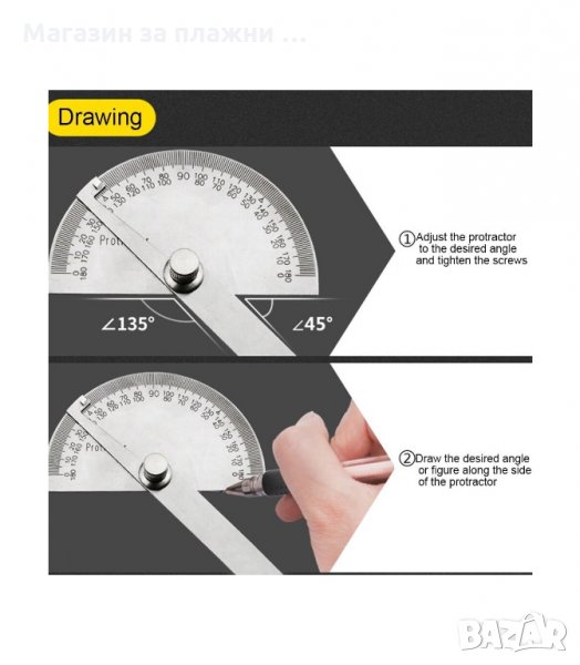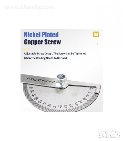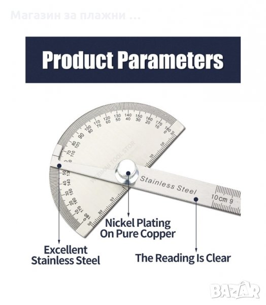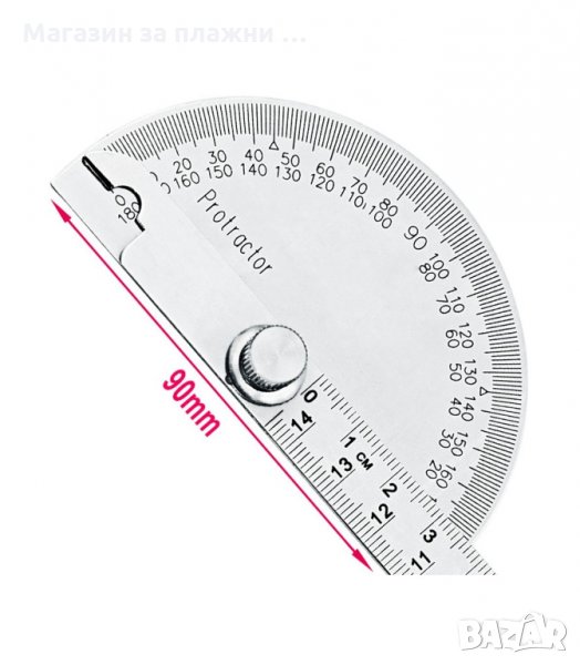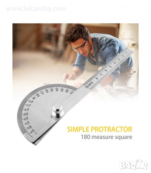 Транспортир, изработен от високовъглеродна стомана с обхват на измерване 180 °.