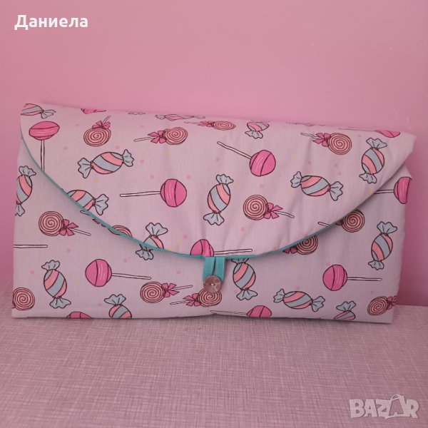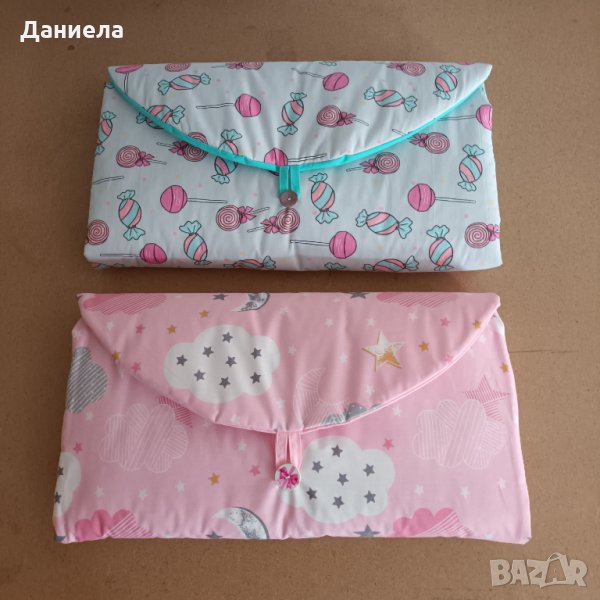 Изработвам повивалник органайзер, който ви дава удобство, където и да отидете. Разгъвате го и имате повивалник с два обемни джоба за памперси, козметика и каквото ви е необходимо. А може да ви послужи и за завивка за количката. Размери 47/90, сгънат - 25/47. Изработен от ранфорс и силиконова вата. Пере се в пералня. Може да поръчате в желан десен