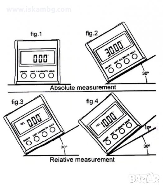 Електронният нивелир определя с точност ъгъла н отклонение по хоризонтала и вертикала.Има специален режим на измерване на относителни ъгли,между две произволни избрани повърхности (например между повърхноста на работната маса и режещия диск).
