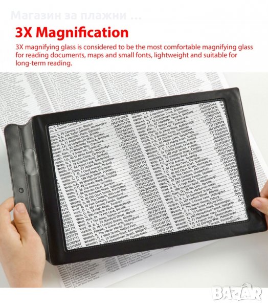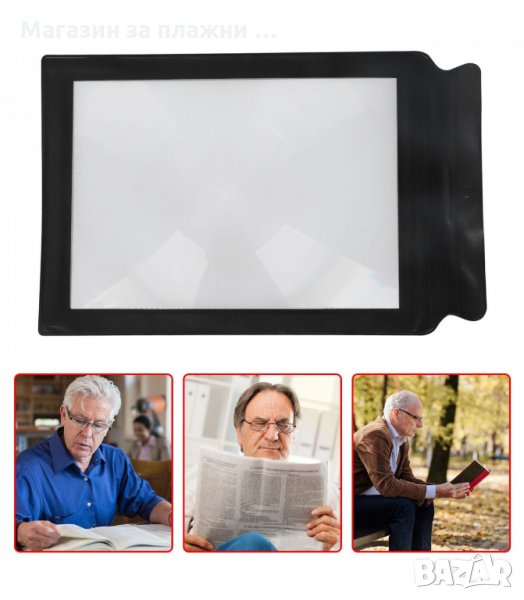 Екран – лупа A4 за четене на книги, разглеждане на печата, разглеждане на бележки, монети, печати, карти, директории, документи. Практическо увеличително стъкло, което ще улесни живота. Перфектният подарък за възрастни и хората с лошо зрение. Увеличителното стъкло Удобният размер и форма ви позволяват да четете големи текстови полета. Увеличаващо стъкло 3 пъти.