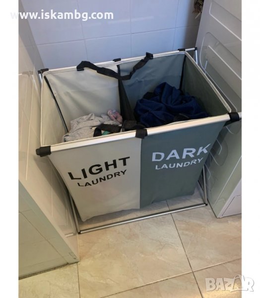 Кош за пране с 3 практични торби за пране, изрязани ведно. Чанта за пране с три разделения, изработена от лесен за поддръжка полиестер. Залесно сортиране на мръсно пране. Спестява време преди пране.