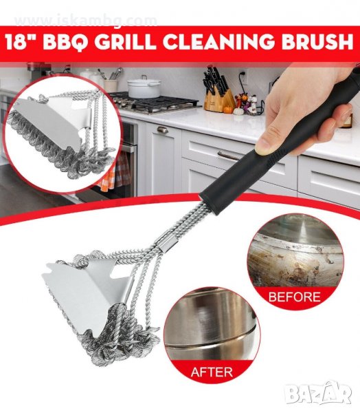 Дизайнът позволява лесно и бързо, за няколко минути, да почистите Вашето барбекю. Четката е дълга 45 см и се състои от две или три по-малки, разположени една до друга четки. Изработена е от неръждаема стомана. Снабдена с удобна дръжка, изработена от много издръжлива пластмаса. С удобна кукичка за закачане на четката.
