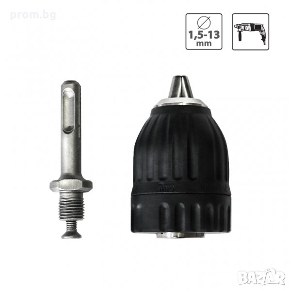 S&R безключов патронник 2 mm- 13 mm, 1/2 - 20UNF, с опашка за SDS-plus захват, внос от Германия. Безключовият патронник е практично захващащо устройство за свредла и битове. С ръчно закрепяне (не са необходими ключове) към шпиндела на бормашината, винтоверта или перфоратора. Предимството на безключовите патронници е, че свредлото може да се сменя бързо и лесно. Размери и характеристики: