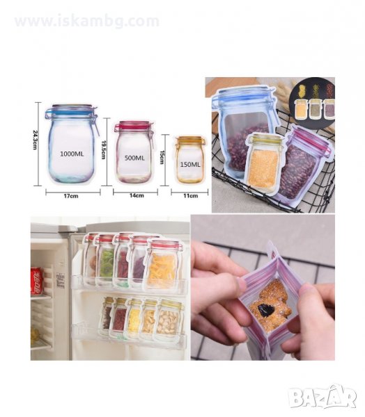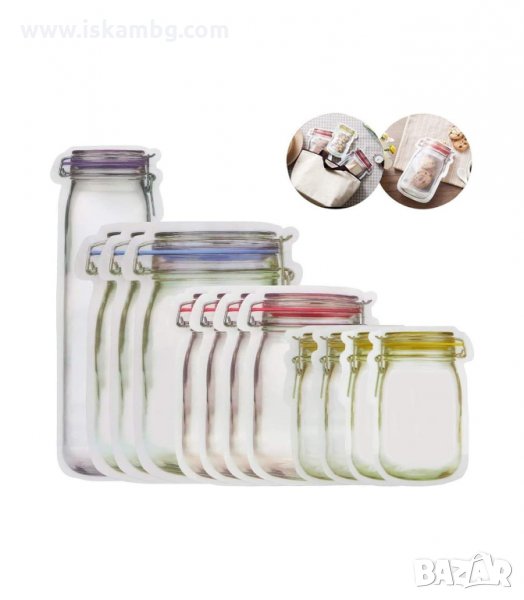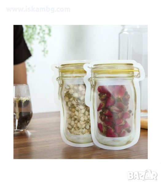 Предлагаме 2 комплекта от тези клипс торбички за съхранение с форма на бурканчета Mason Jar: