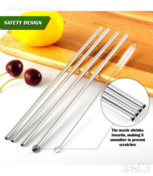 Метални сламки за пиене 2 бр. или 4бр в комплект с четчица за почистване