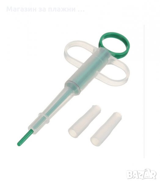 Уред за хранене или подаване на лекарства за животни . Комплекта се състои от 1 спринцовка и 2 накрайника , единият накрайник е разцепен за поставяне на хапчета . Уредът е подходящ за подаване на храна на малки или стари , болни животни , както и придаване на лекарства течни или на хапчета директно в гърлото . Подходящ за кучета , котки ,и други домашни и стопански животни : птици , овце , кози , кончета и др .
