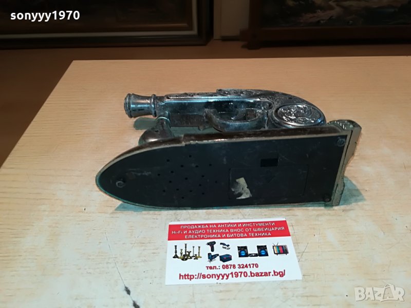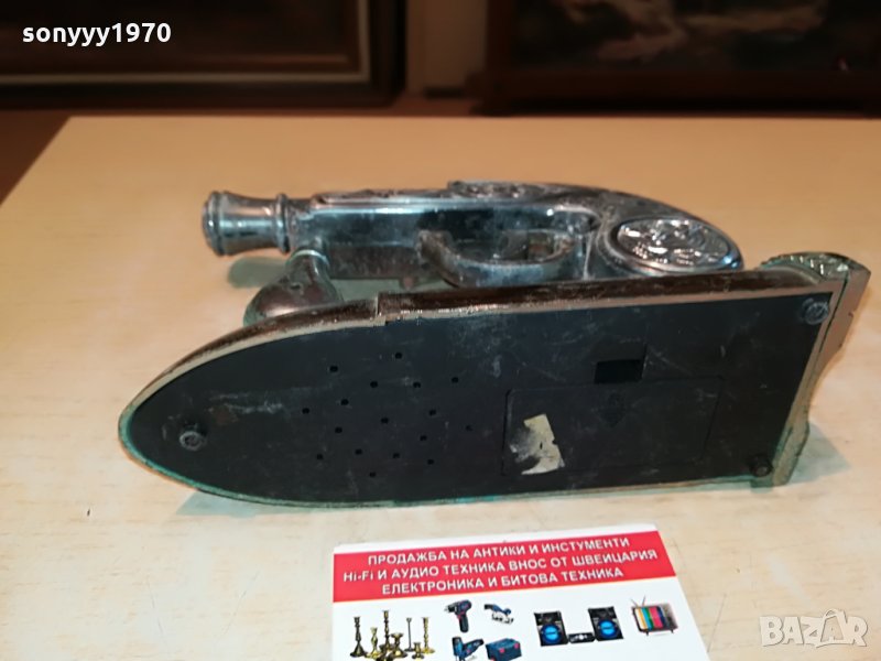 19х14х7см-метален с патина и пластмасова основа-не пали трябва да се зареди-красив и стилен за колекция декор-ползване-пращаме със спиди или еконт с преглед и тест след превод на капаро за куриерската услуга поради зачестили некоректни потребители-поръчки само тук в саита! по телефона и със смс не! краини цени! бартери не правиме! ПАРИ НЕ ВРЪЩАМЕ! всеки ден нови неща-още 2-3 наши обяви тук