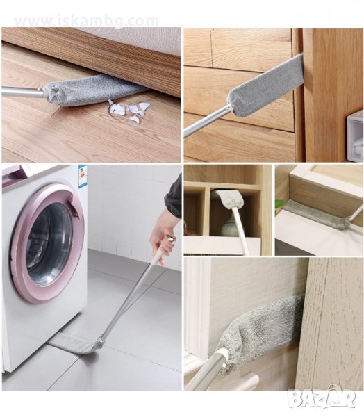 Предназначена за почистване на прах, паяжини, косми под дивани, легла, в процепите между шкафове и мебели - там, където обикновените четки и накрайниците на прахосмукачките не могат да влязат. Специалната материя на почистващата глава улавя и задържа всички натрупани замърсявания и ги извежда навън. За да имате наистина чист дом, дори там, където не се вижда!