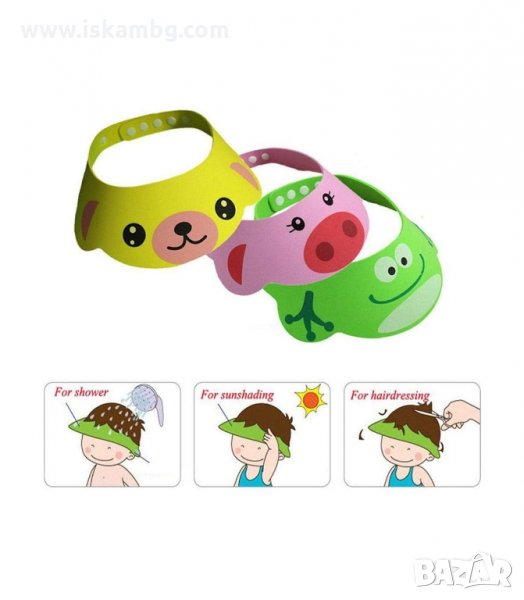 Изработена е от мека, гъвкава, водоустойчива пяна, лесна за поддържане. Бебешката козирка за баня предпазва очите на бебето от водата по време на къпане. Безопасна и удобна за носене. Мека, еластична и гъвкава.