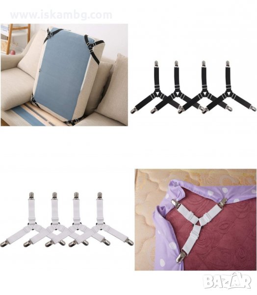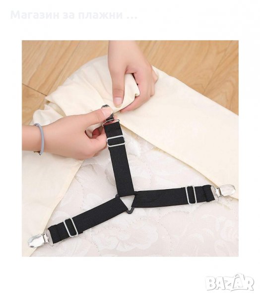 Удобни и лесни за употреба, дължината може да се регулира, което ги прави подходящи за всеки размер на матрака или масата.Щипки-държачи за домашен текстил: спално бельо (чаршаф с ластик, обикновен долен чаршаф), протектор за матрак, покривало за легло, покривки за трапезни маси, различни видове калъфи.