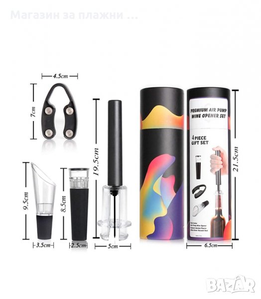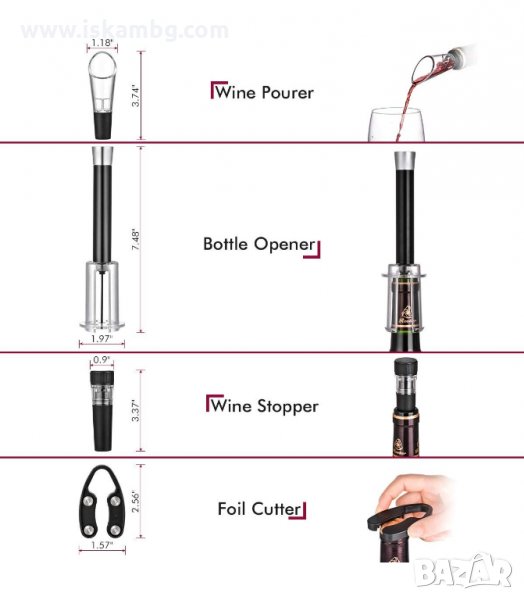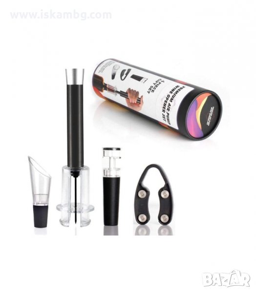Сет за вино - тирбушон с въздух, резачка и тапа с вакуум помпа